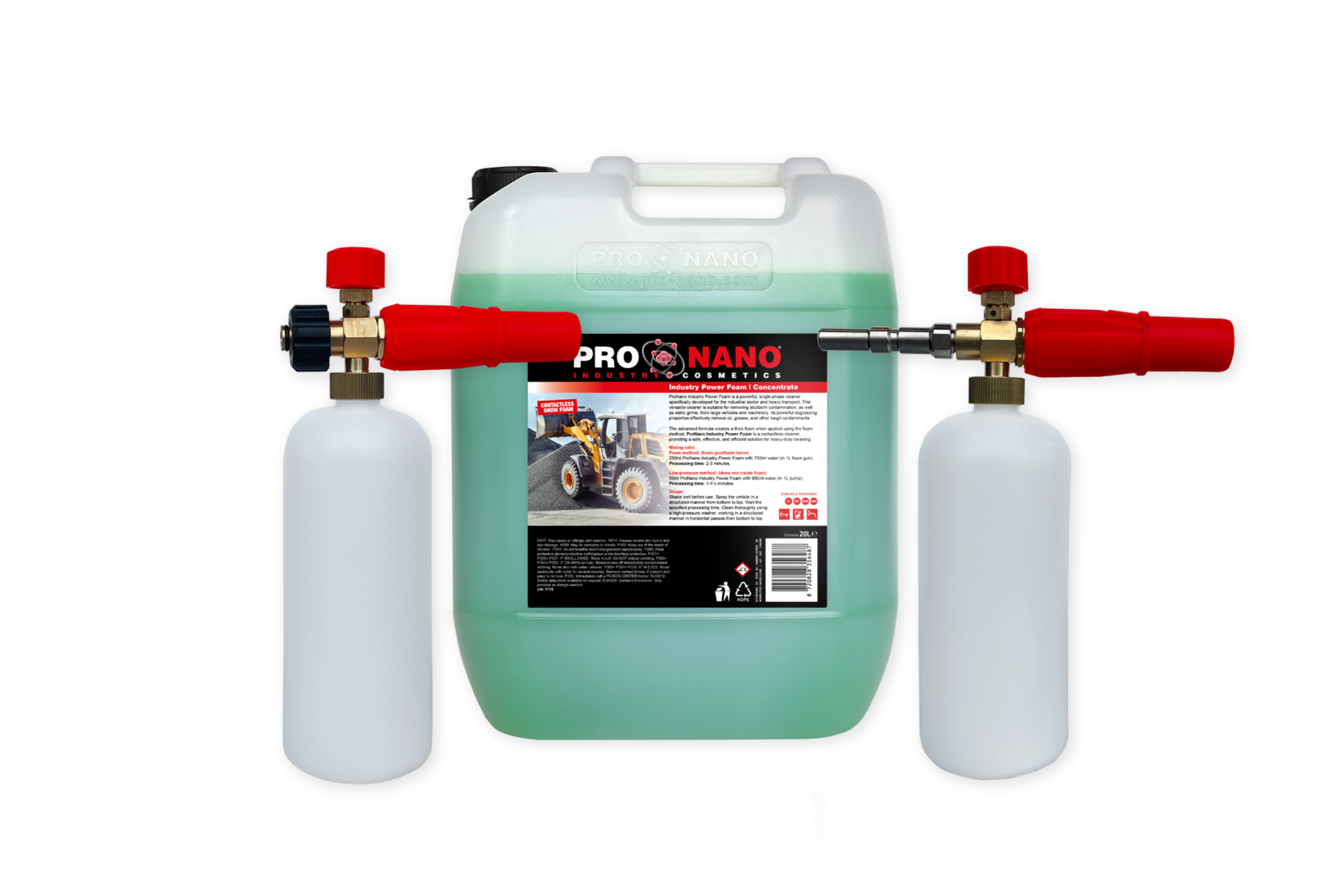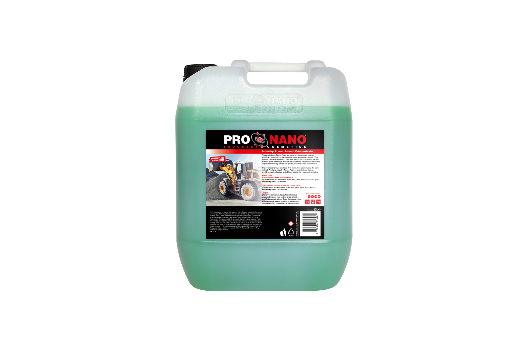 ProNano Power Foam is een uiterst effectief, enkelfasig product ontwikkelt voor het contactloos en krasvrij reinigen van grote industriële machines en voertuigen. De geavanceerde formule reinigt zware vervuiling en heeft een ontvettende eigenschappen. Het product creëert tijdens het wassen volgens de schuimmethode een dik en stabiel sneeuwschuim waardoor de vervuiling goed aan de shampoo blijft plakken en gemakkelijk af te spoelen is.