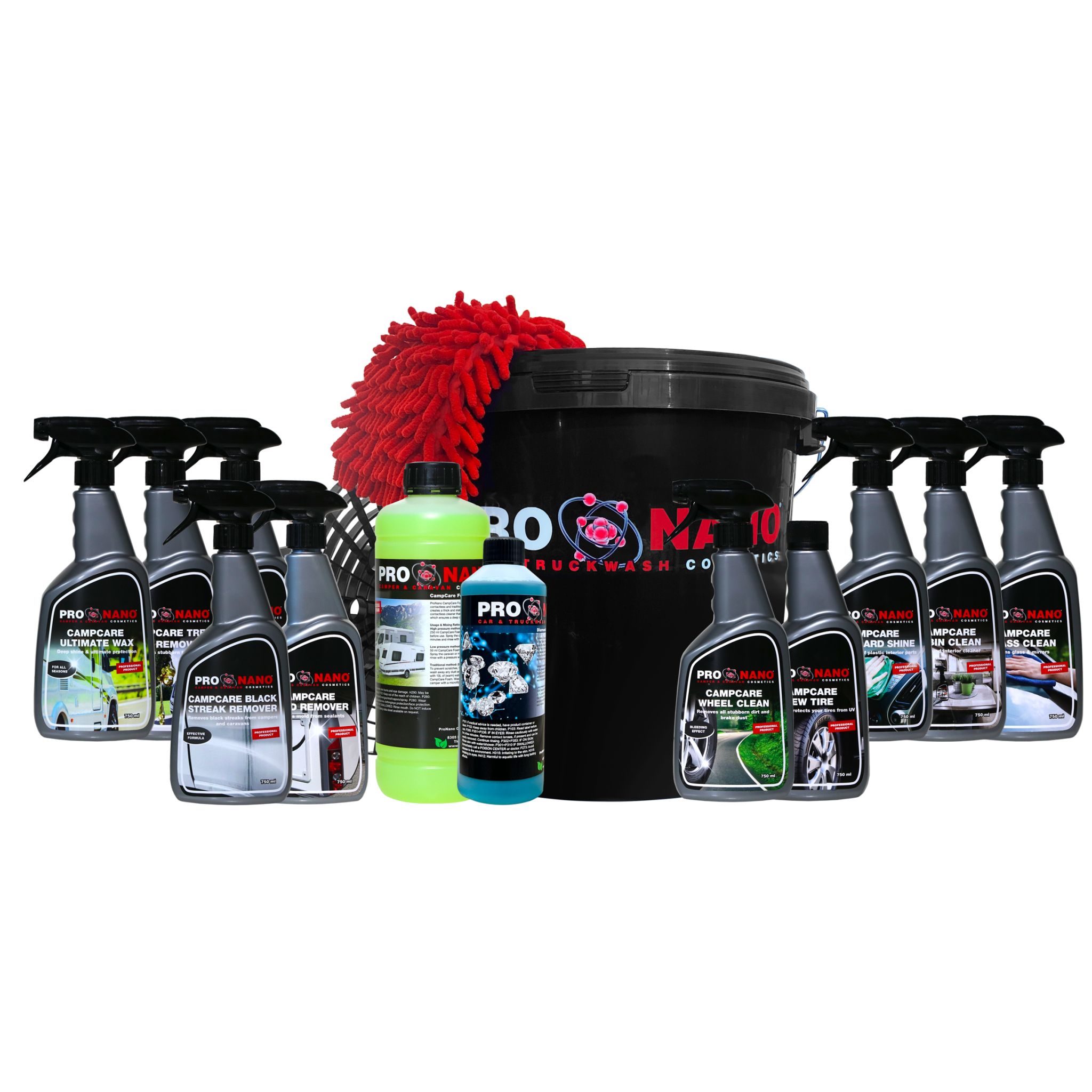 De ProNano CampCare Bucket Deal Pro is een compleet pakket voor het effectief en eenvoudig reinigen en onderhouden van uw camper of caravan. Het pakket bevat alle producten die uw camper of caravan zullen doen stralen!