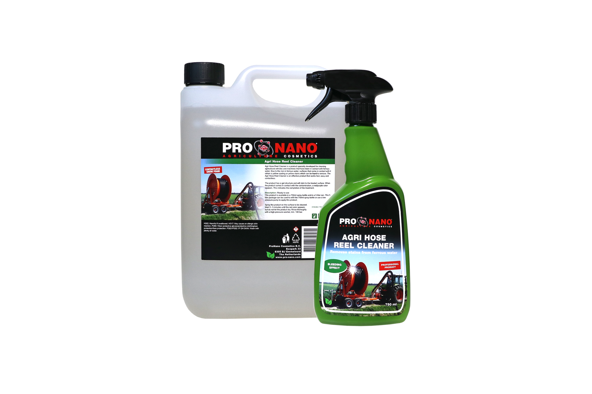 ProNano Agri Hose Reel Cleaner is een krachtige product voor het reinigen van landbouwvoertuigen en machines die in contact zijn geweest met ijzerhoudend bronwater.