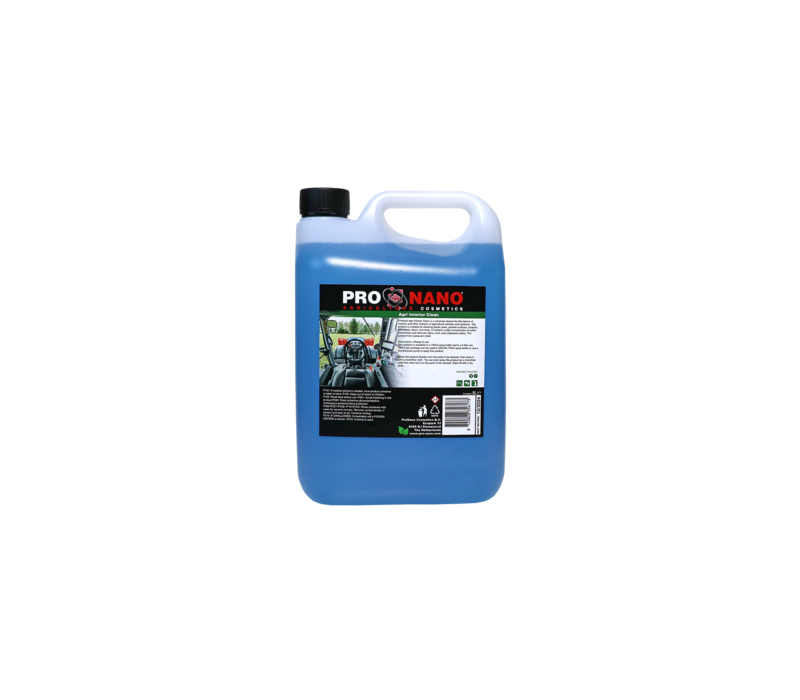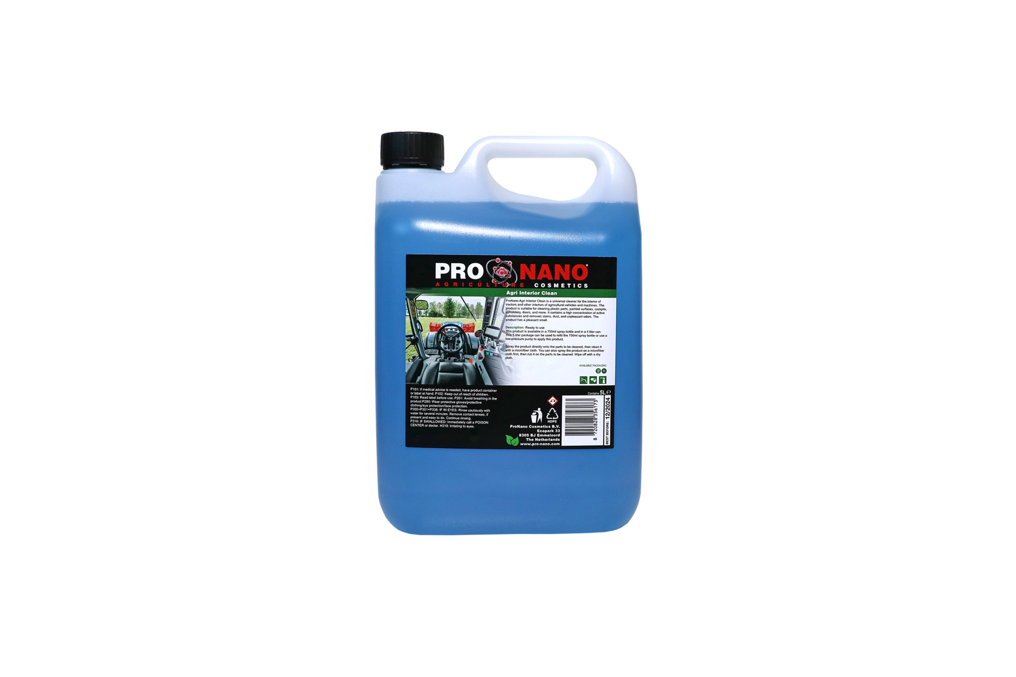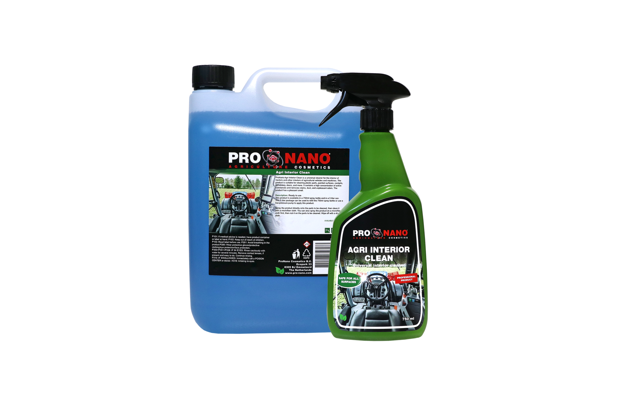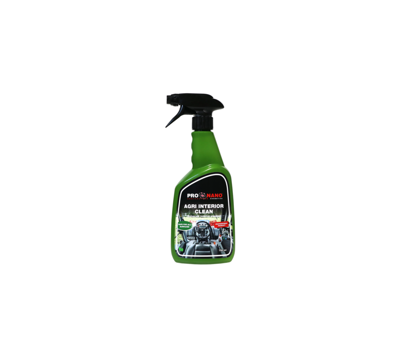 ProNano Agri Interior Clean is een universele reiniger voor het interieur van tractoren en andere interieurs van landbouwvoertuigen en machines. Het product is geschikt voor het reinigen van kunststof onderdelen, gelakte oppervlakken, cockpits, stoffering.