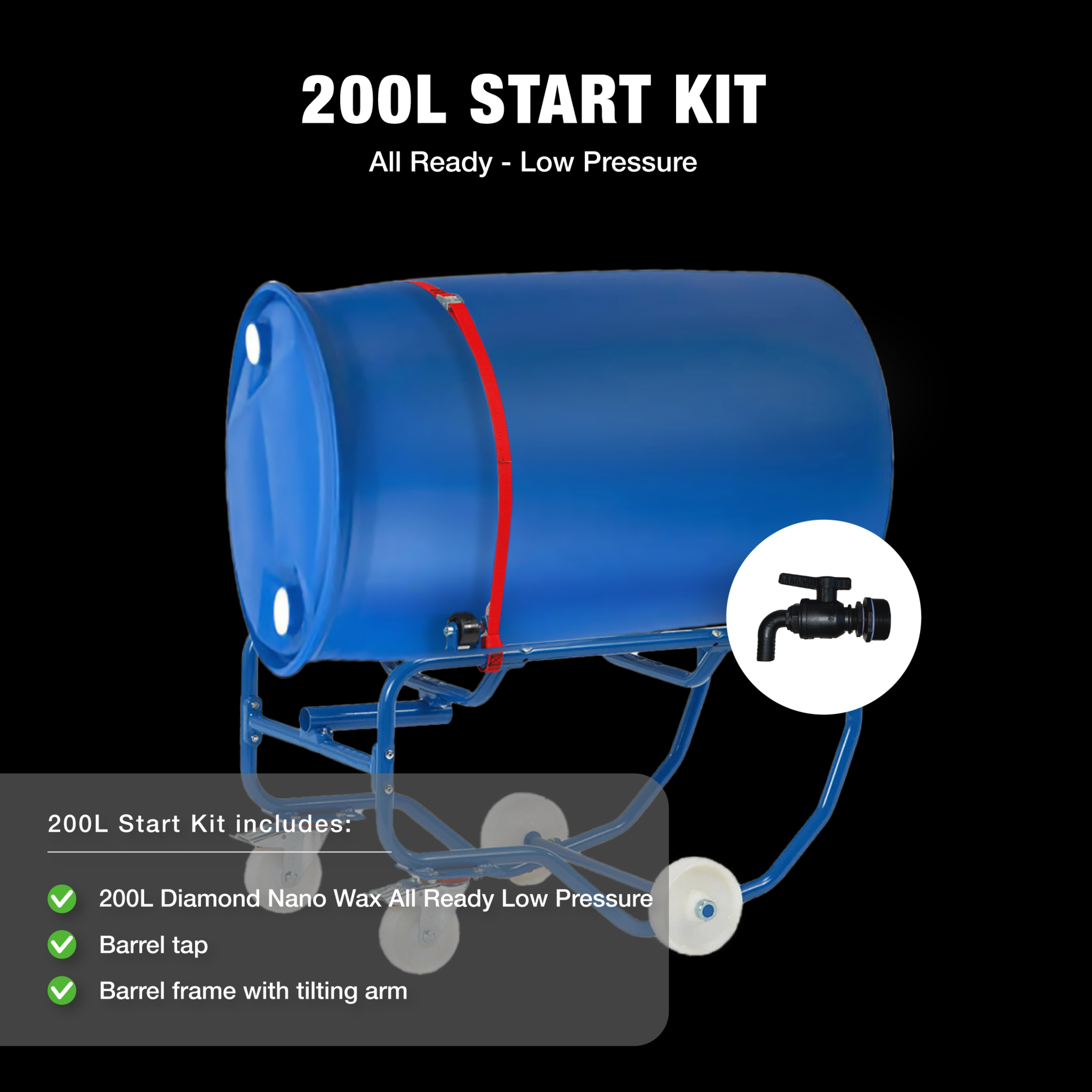 - 200L Start Kit: inclusief stalen vatonderstel met kiepstang en tapkraan