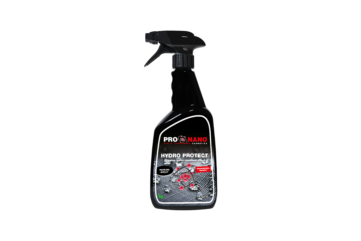ProNano Hydro Protect is een krachtige impregneerspray voor textiel ontwikkeld om oppervlakken volledig water- en vuilafstotend te maken. Het product beschermt effectief tegen schimmelvorming, vocht en andere organische verontreinigingen, en biedt tevens vlam vertragende eigenschappen voor extra veiligheid. Het hydrofobe effect verbeterd de duurzaamheid van het materiaal en houdt het materiaal in topconditie. ProNano Hydro Protect bevat een hoge concentratie actieve ingrediënten gecombineerd met de geavanceerde eigenschappen van Nano Technology, wat resulteert in een extreem hydrofoob oppervlak met een parelend waterdrop effect.