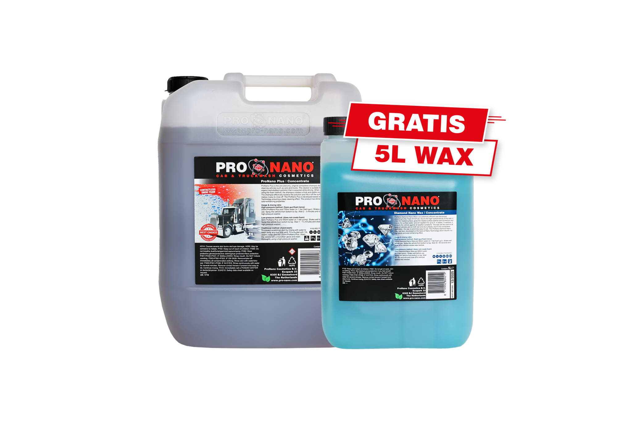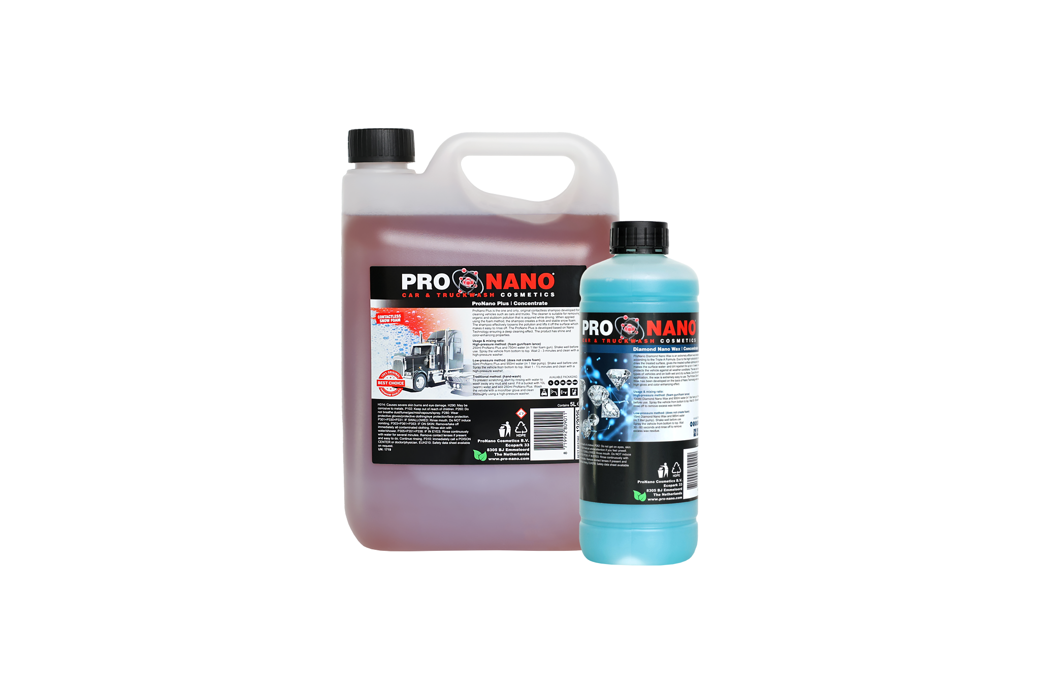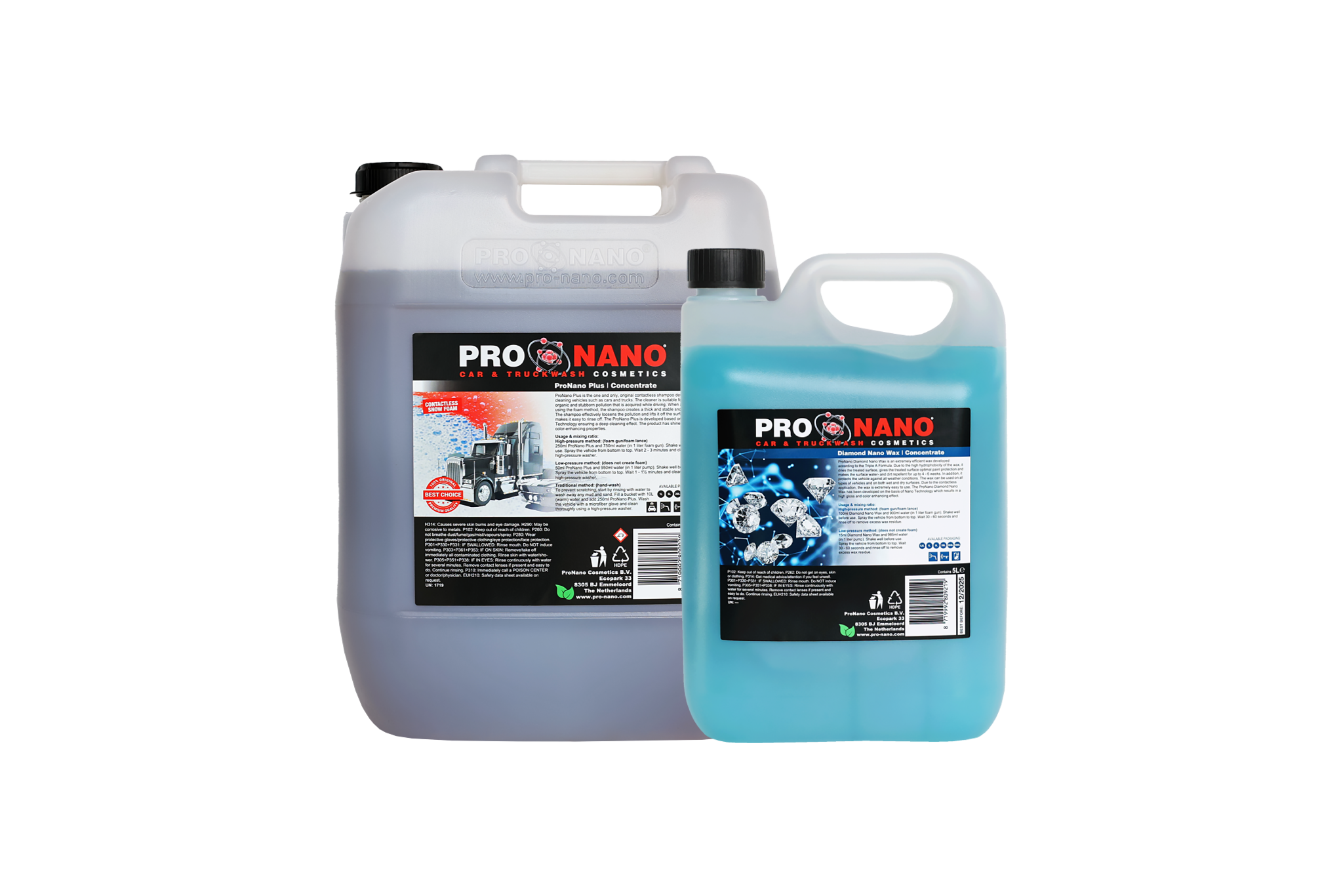 ProNano Plus is een innovatieve en effectieve reiniger ontwikkelt voor het reinigen van voertuigen zoals vrachtwagens en auto’s. De revolutionaire formule van de ProNano Plus maakt het uiterst geschikt voor het contactloos en krasvrij reinigen. Het product creëert tijdens het wassen volgens de schuimmethode een dik en stabiel sneeuwschuim waardoor de vervuiling goed aan de shampoo blijft plakken en gemakkelijk af te spoelen is.