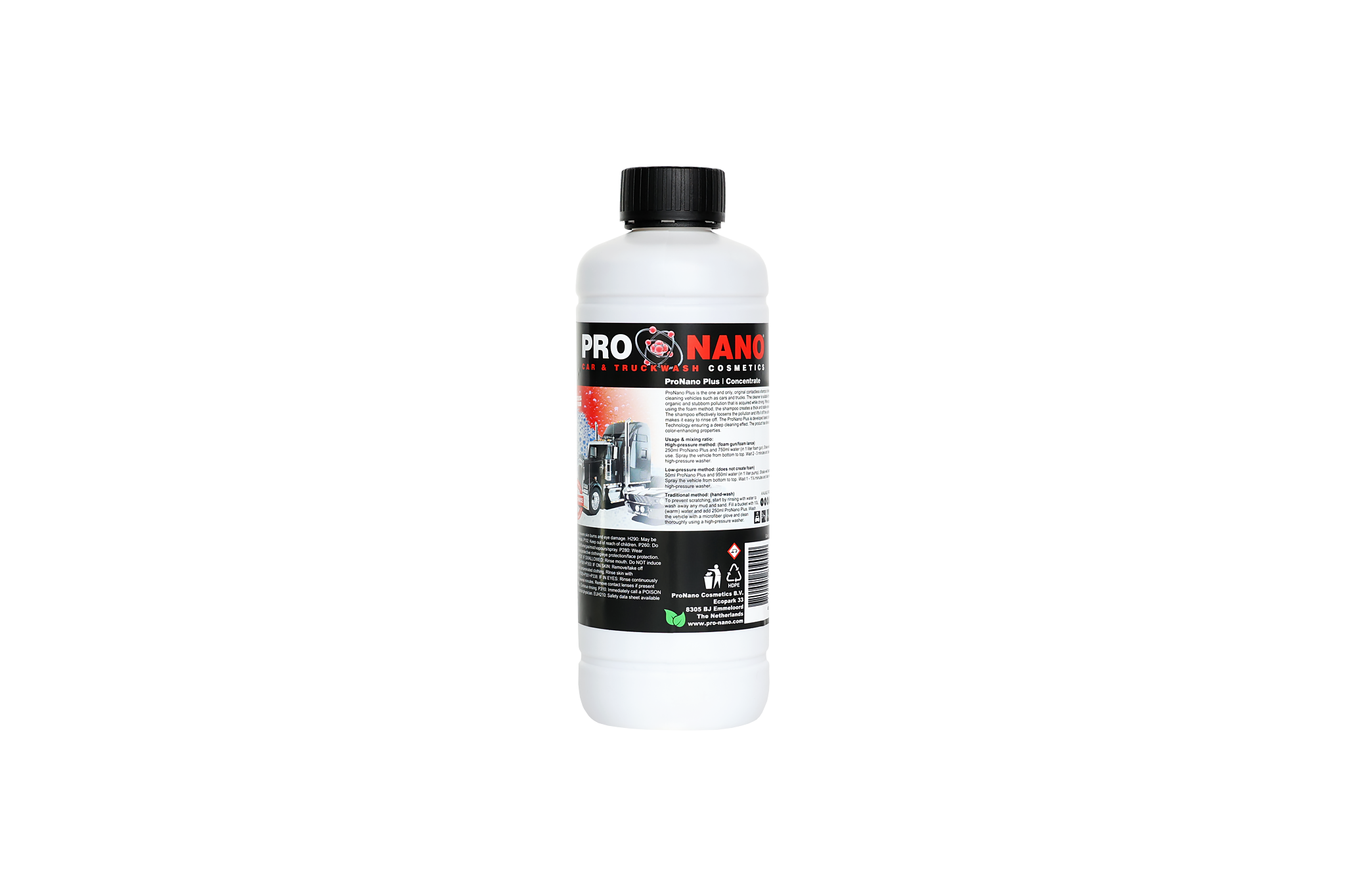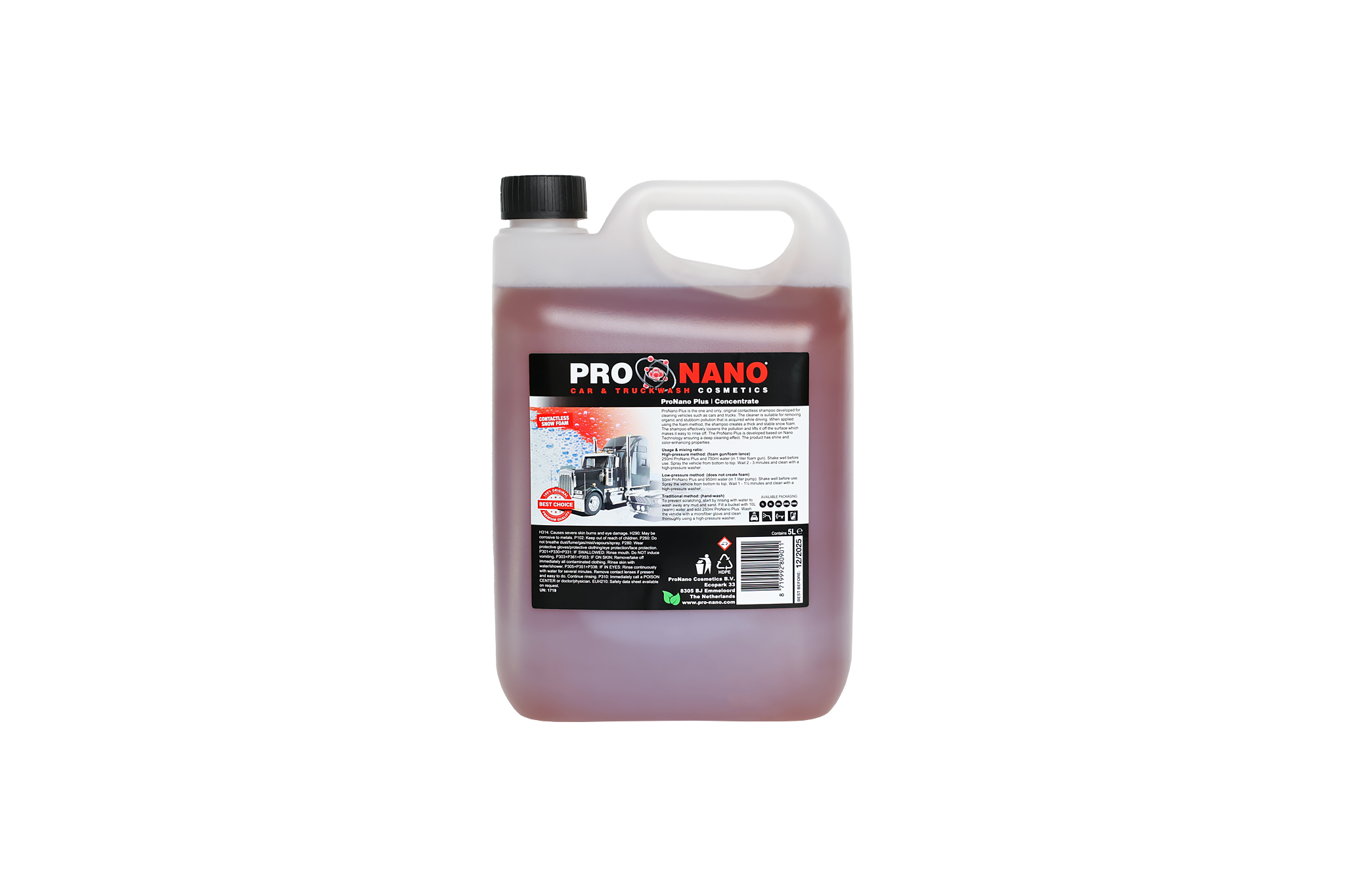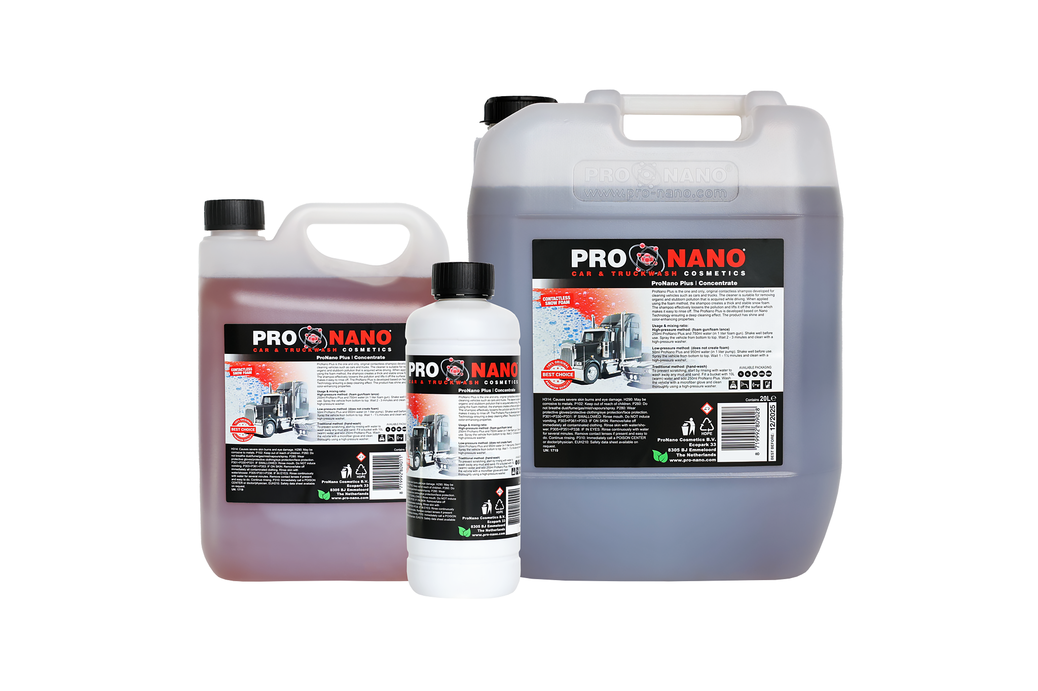ProNano Plus is een innovatieve en effectieve reiniger ontwikkelt voor het reinigen van voertuigen zoals vrachtwagens en auto’s. De revolutionaire formule van de ProNano Plus maakt het uiterst geschikt voor het contactloos en krasvrij reinigen. Het product creëert tijdens het wassen volgens de schuimmethode een dik en stabiel sneeuwschuim waardoor de vervuiling goed aan de autoshampoo blijft plakken en gemakkelijk af te spoelen is.