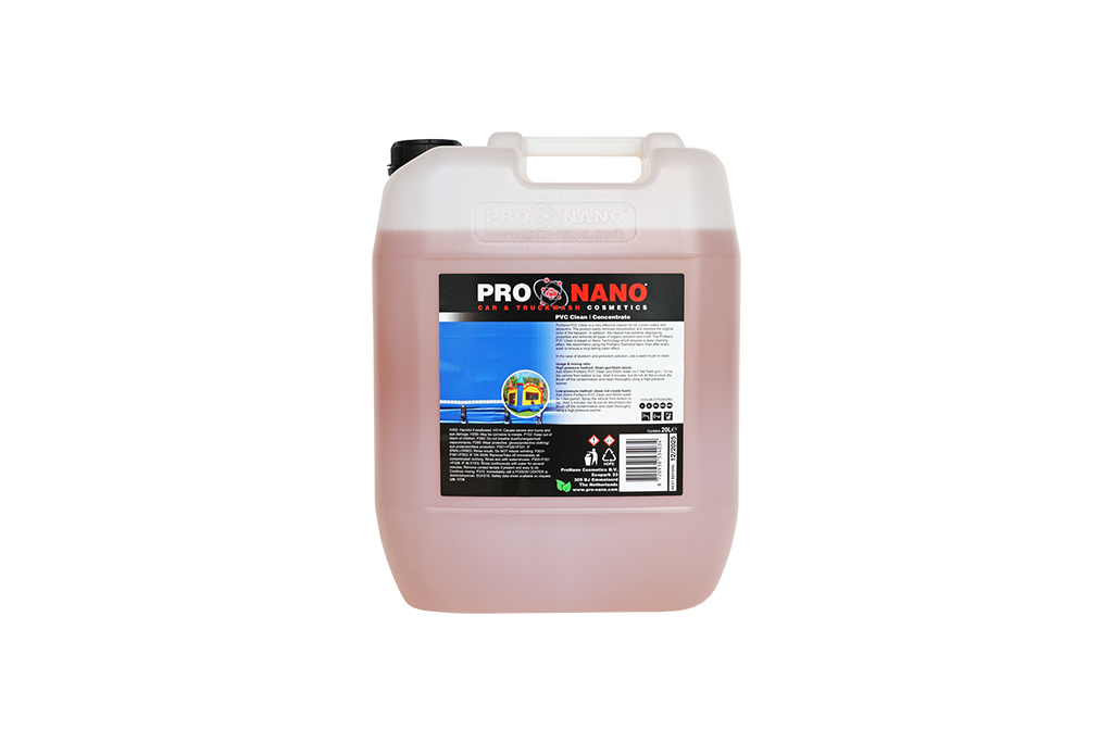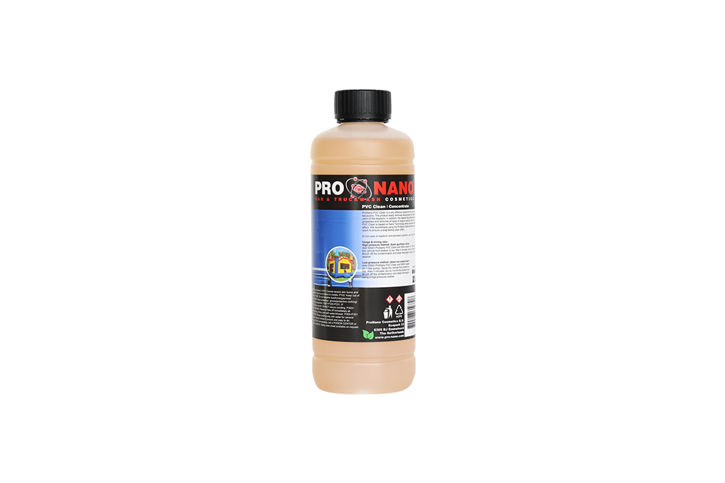 Meng 200ml ProNano PVC Clean met 800ml water (in een 1 liter pomp). Inwerktijd: 3 minuten.