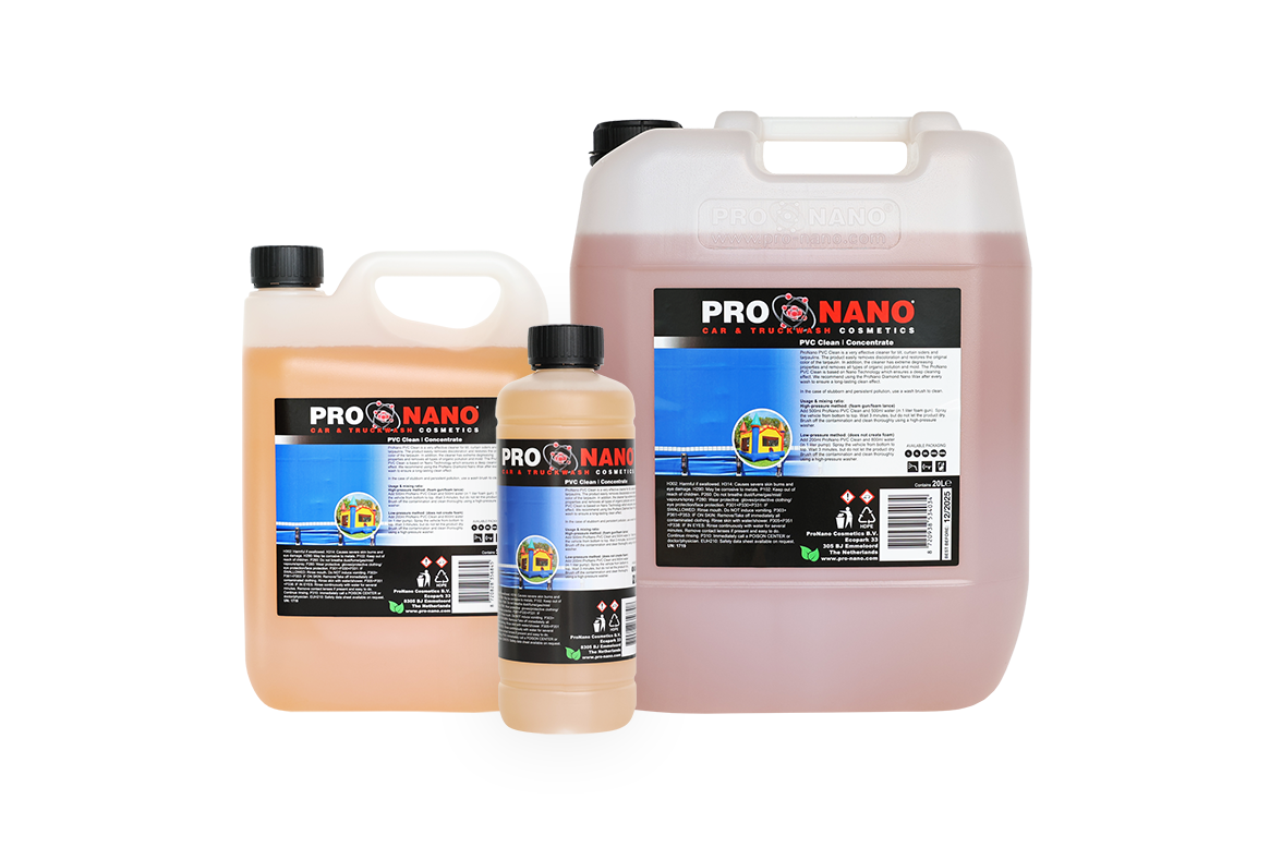 ProNano PVC Clean is een zeer effectieve reiniger voor huif-, dek-, en schuifzeilen. Het product verwijderd gemakkelijk verkleuring en herstelt de originele kleur van het zeil. Daarnaast werkt de reiniger extreem ontvettend en verwijdert het allerlei organische vervuiling en schimmels. Wij adviseren het gebruik van de ProNano Diamond Nano Wax na elke reiniging voor bescherming en het langdurig schoonhouden van het zeil.