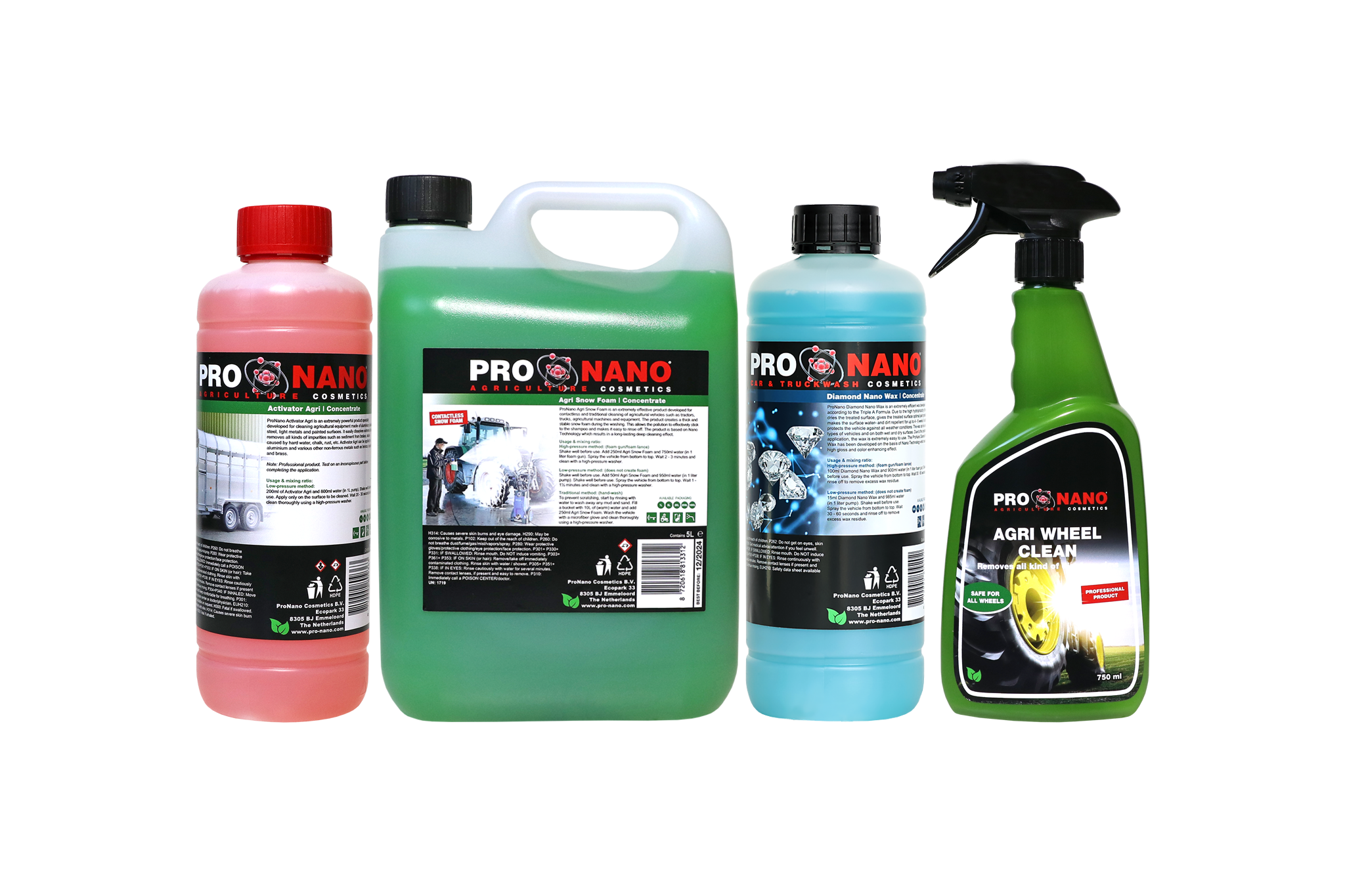 De ProNano Agri Snow Foam is een uiterst effectieve shampoo voor het contactloos reinigen van landbouwvoertuigen, zoals tractoren en maaidorsers, en landbouwmachines. Tijdens het wassen zorgt het product voor een dik en stabiel sneeuwschuim waardoor de vervuiling moeiteloos wordt losgeweekt. Het product is gebaseerd op Nano Technologie wat resulteert in een langdurig diep reinigend effect en een kleur- en glansversterkende werking.
