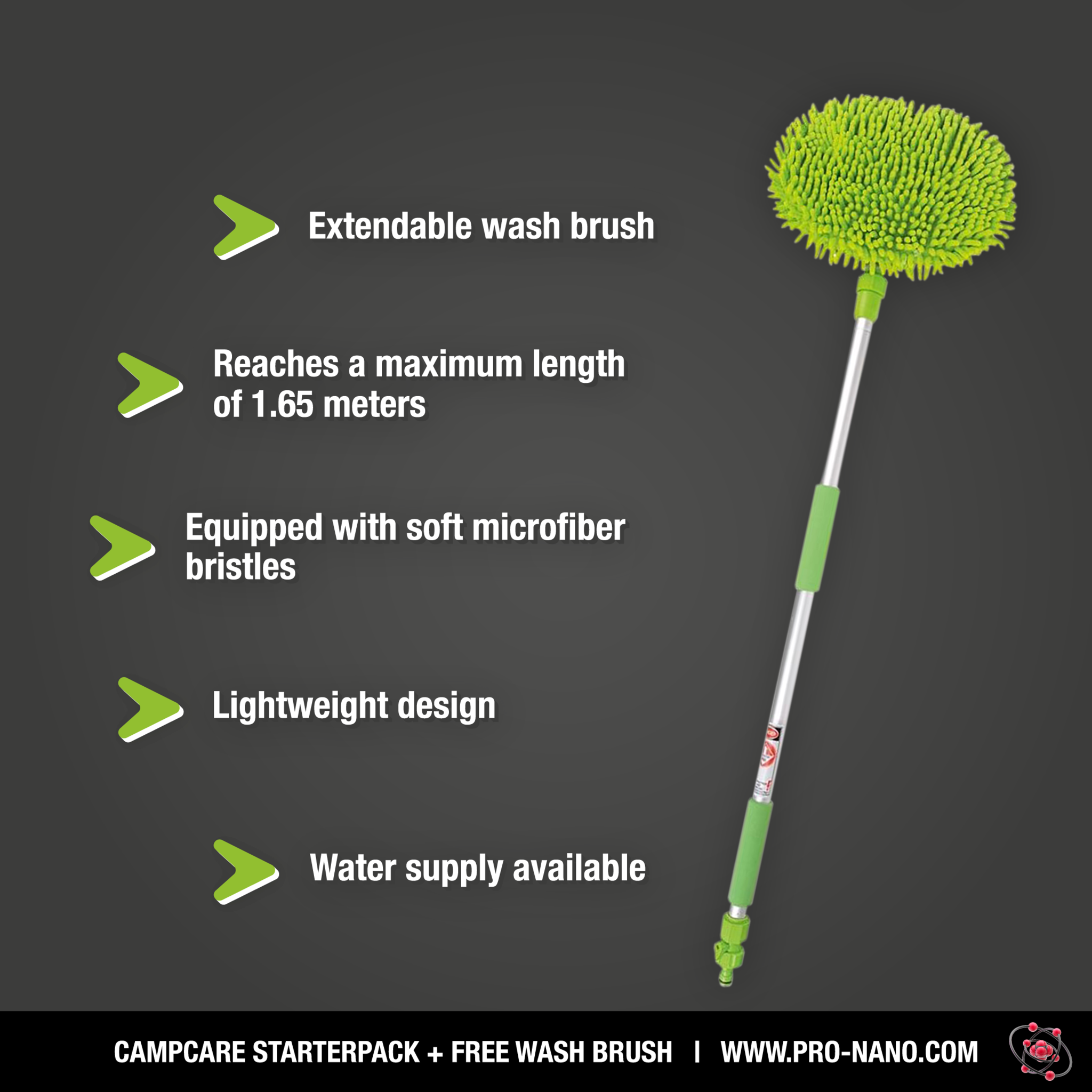 Start eenvoudig met reinigen; het ProNano Starterspakket CampCare bevat de essentials voor een basis ProNano Washing voor campers en caravans. In drie simpele stappen ervaart u het ultieme wasresultaat. Ga direct aan de slag! NU met GRATIS ProNano CampCare Wash Borstel!